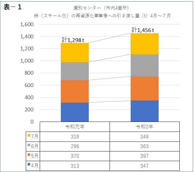 最近、鉄(スチール缶)の量が増えています(表-1)。