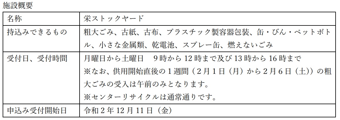 市民の皆さまが粗大ごみを直接持ち込める自己搬入施設が栄区にオープンします。